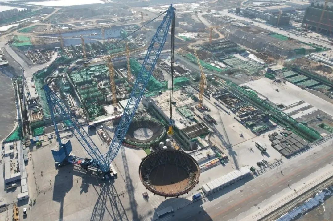 近日,徐大堡核電1號(hào)機(jī)組CV底封頭吊裝順利完成。 巨力索具成套吊裝系統(tǒng)確保吊裝過(guò)程穩(wěn)步進(jìn)行。
