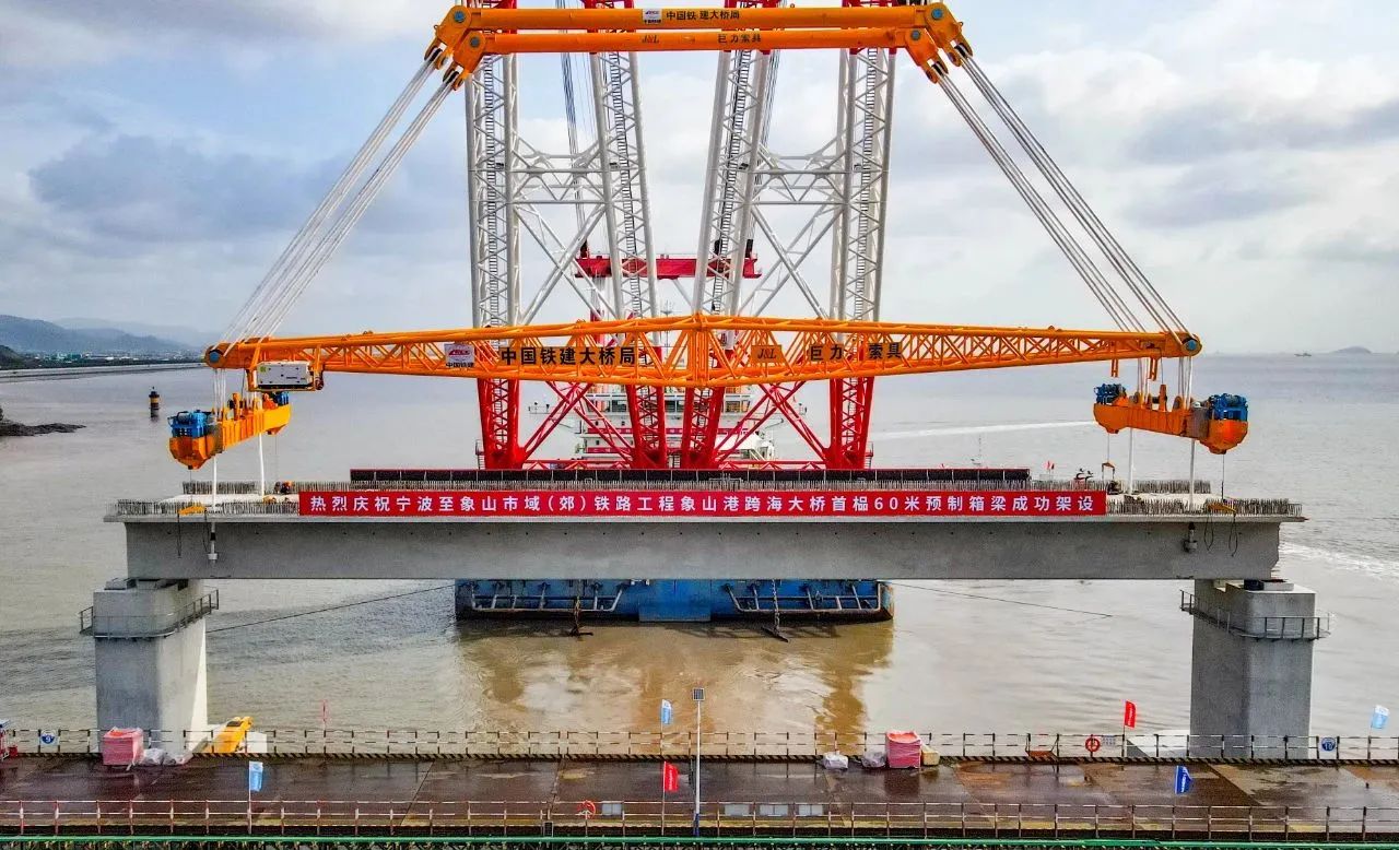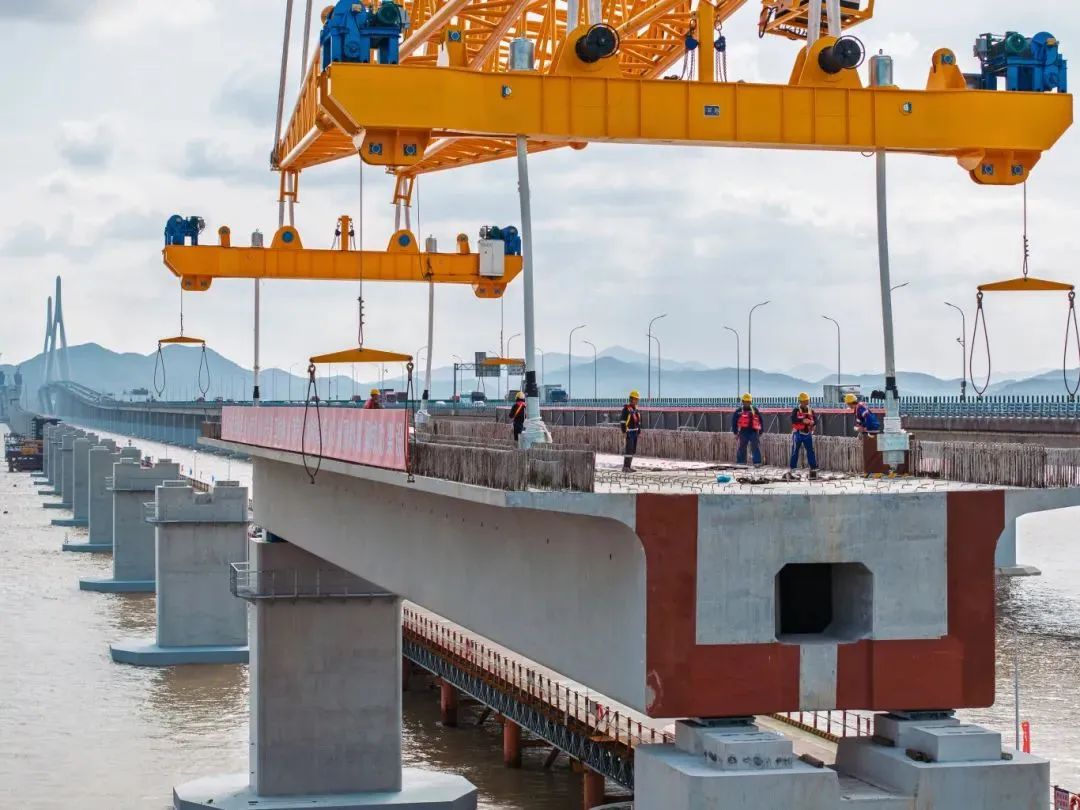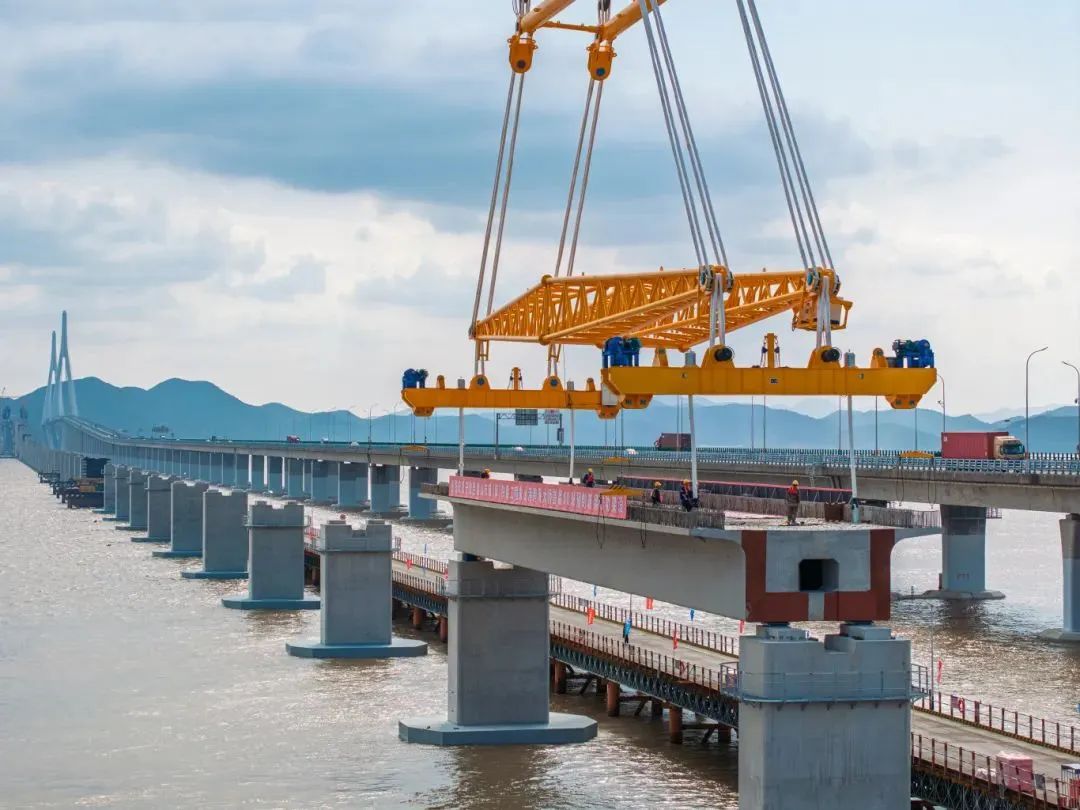 11月5日,隨著現(xiàn)場(chǎng)指揮一聲令下,國內(nèi)首座市域(郊)鐵路跨海大橋,重1700噸的預(yù)制箱梁穩(wěn)穩(wěn)落至橋墩上,巨力索具箱梁吊具全程保障首榀箱梁成功架設(shè),標(biāo)志著大橋全面進(jìn)入上部結(jié)構(gòu)施工階段。