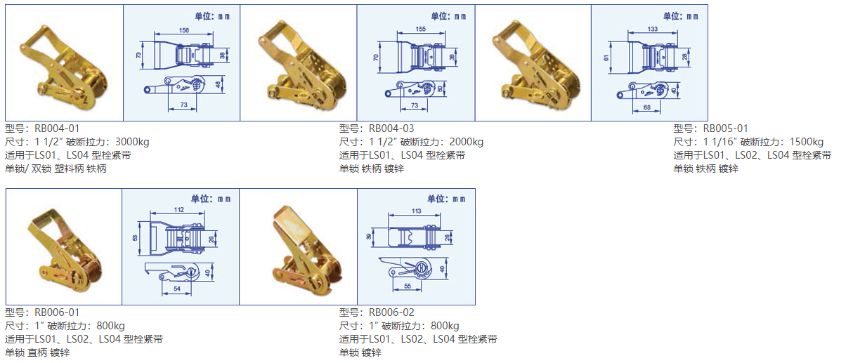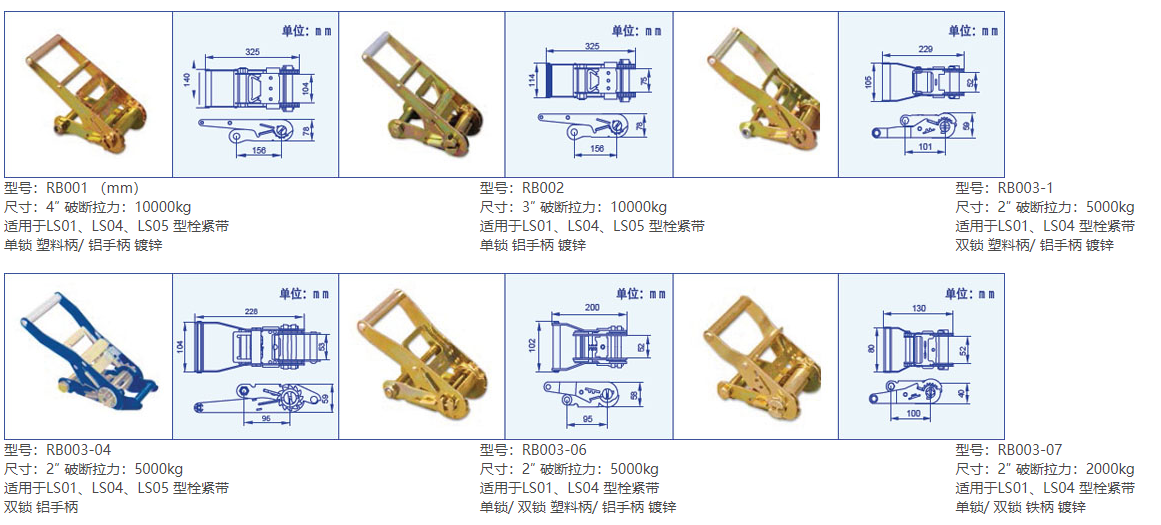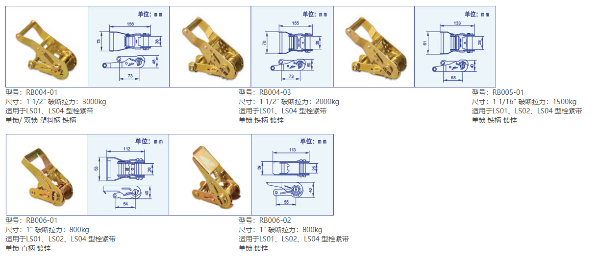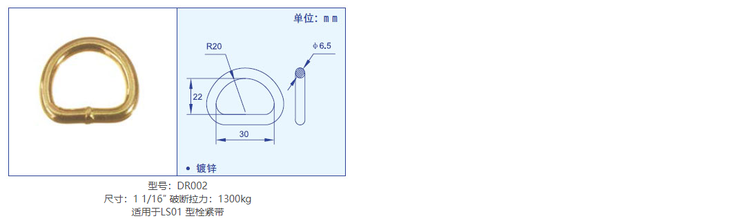 產品型號 適用尺寸 破斷拉力(kg) 規格大小(mm) 表 面 適合型號 備注
